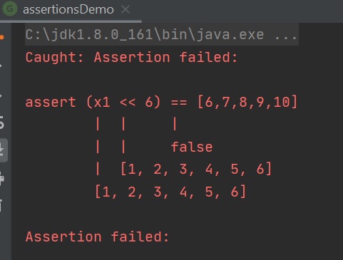 | Assert example | // you must provide an assertion an expression that evaluates to true assert true // we can provide a full expression on the right hand side // note that unlike Java and more like Ruby or Scala == is equality assert 1 == 1 // like the example above we are evaluating an expression def x = 1 assert x == 1 // The power assertion statements true power unleashes in complex Boolean statements, // or statements with collections or other toString-enabled classesDemo: def x1 = [1,2,3,4,5] assert (x1 << 6) == [6,7,8,9,10] Note: below is what a failed assert looks like in intellij ![]() |