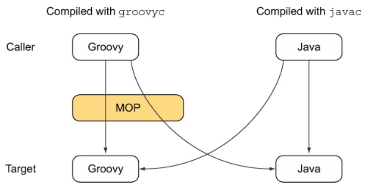 The Meta Object Protocol (MOP) is a collection of rules of how a request method call is handled by the Groovy runtime system and how to control the intermediate layer. The MOP works like a filter for all method calls that originate from code that was compiled by Groovy, the MOP makes all objects appear rich and powerful.