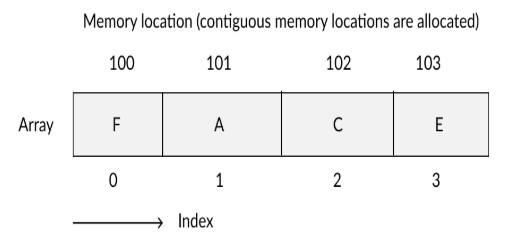 Arrays are one of the simplest types of data structures, they are not dynamic meaning that once created you cannot grow/shrink an array. The index starts a 0, arrays are storage in one continous block in memory, each element is the same size which is the same of the object stored, so for example int whould be 4 bytes each.
