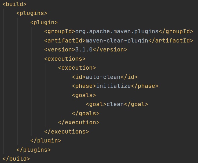 When hooking into plugins via the pom.xml file you add to the build -> plugins properties, you can see an example of this in the clean tips below, different plugins have options which I point you to the documentation.