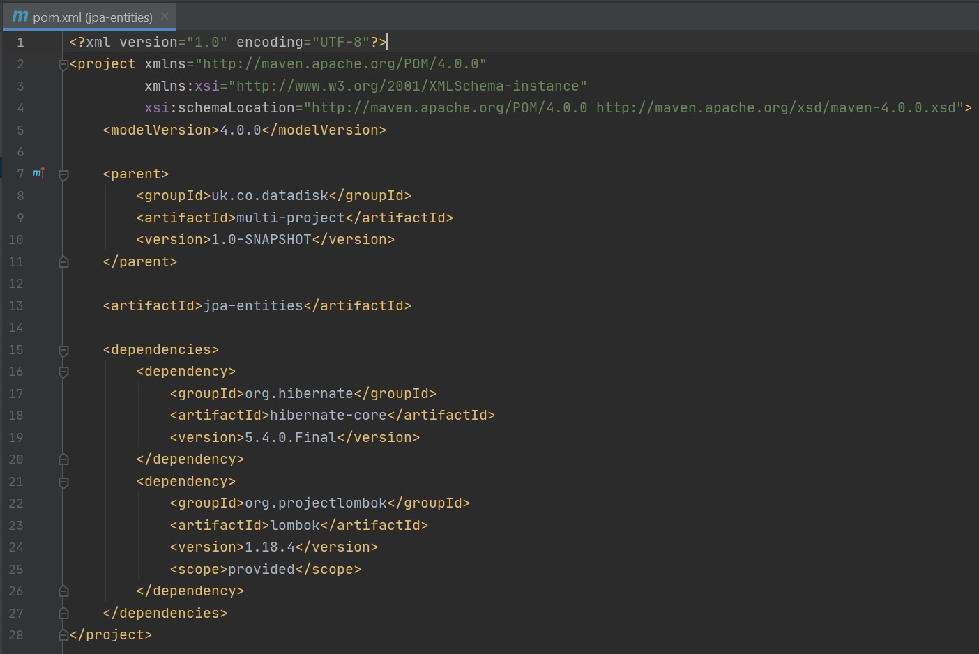 Now we create a directory called jpa-entities and the normal src/main/java structure, create pom file (see below for screenshot), and a User class.