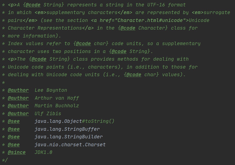 There are a number of tags specific to java documenation which begin with @, some of which I describe below, see the Java documentation for a complete list.