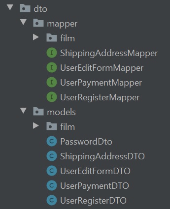 I have created the below directory structure to contain the MapStruct configuration, in the model directory are the DTO's for the actual objects that it will map to, the mapper directory contains the MapStruct interfaces.