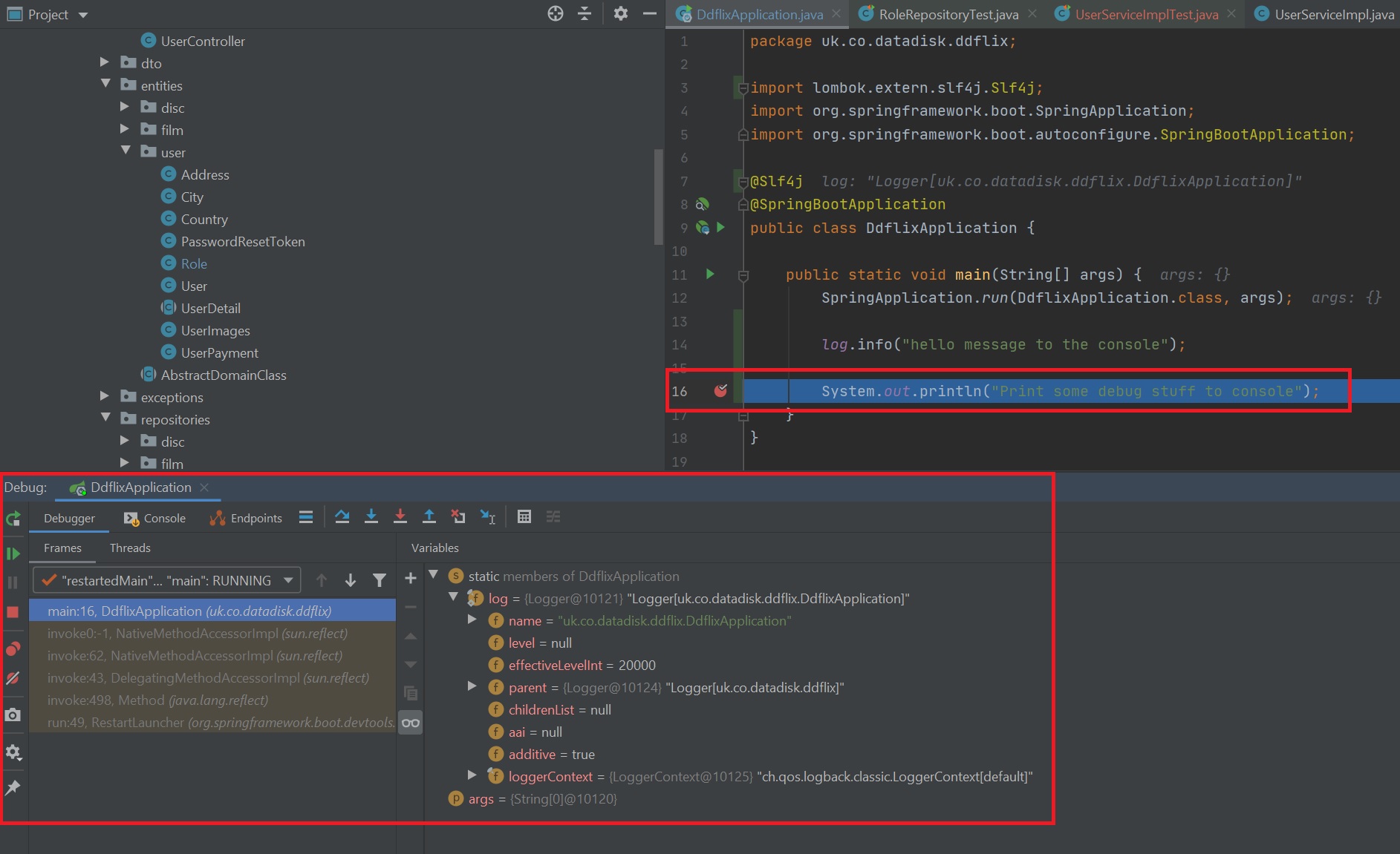 Creating a Logger or using one of the number of lombok log annotations like @Slf4j to either log data to the console (or file) can help, also don't forget the trusted System.out.println can print debug information.