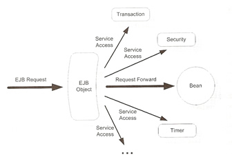 EJB centers on the idea of managed objects, beans are just annotated POJOs themselves. When a client invokes an EJB method using the bean interface it does not work directly on the bean instance, the container makes beans special by acting as a proxy between the client and the actual bean instance. This enables the container to provide EJB services to the client on behalf of the bean instance. For each bean instance the container automatically generates a proxy called an EJB Object. The EJB object has access to all the functionality of the container, including the JNDI registry, security, transaction management, thread pools, session management and pretty much anything else that is necessary to provide EJB services, you can see this in a diagram below