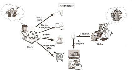 I am going to use the ActionBazaar application from the book to explain domain modeling, I will not detail all the code just enough to understand the concept, the application has a number of activities