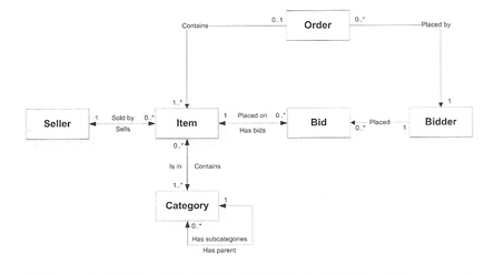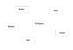 We can pick out the domain objects by looking for the nouns: seller, item, category, bidder, bid and order