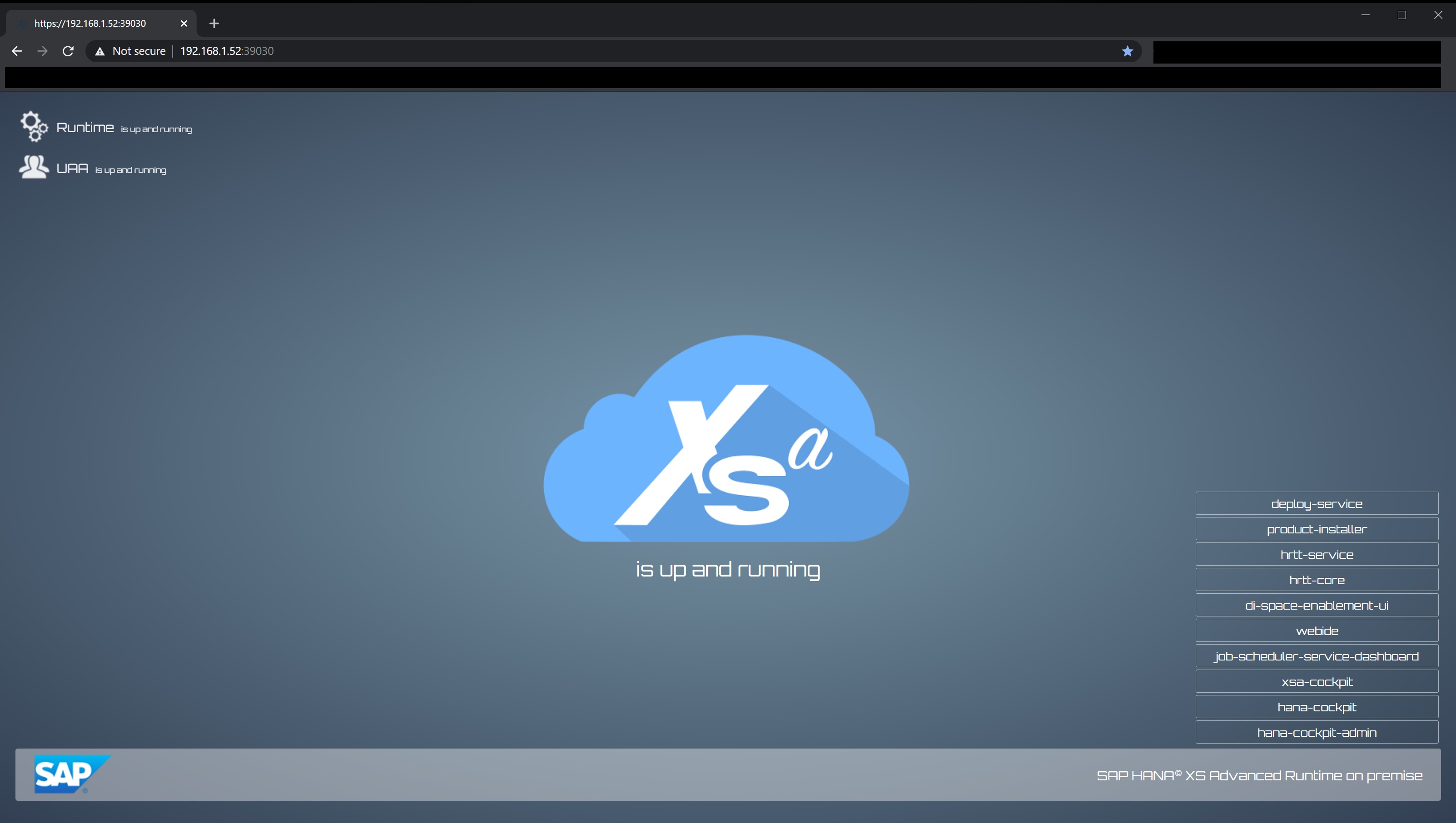 XSA is an application framework which makes development and database access easier for applications, they are a number of services that are started when you start the Hana system, you can view these by logging in using putty and then typing xs-admin-login, then typing xs apps, all the services are then displayed, all services are fully running then the instance is at 1/1, note that it can take up to 30 mins for all the services have started. You can access each of the service using the URL in the urls column. To access the XS admin Note the URL in the output regarding port 39030