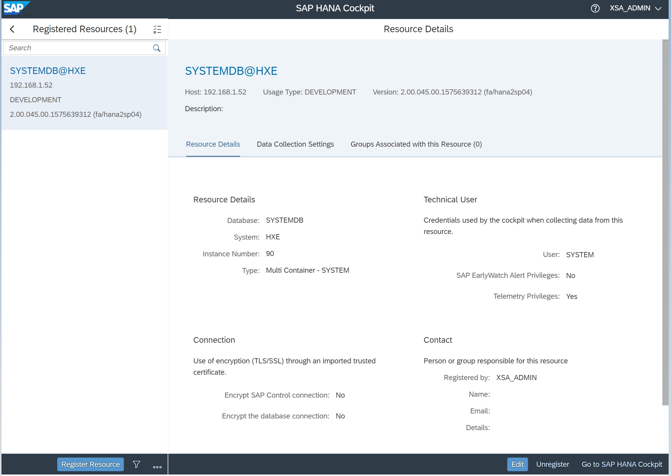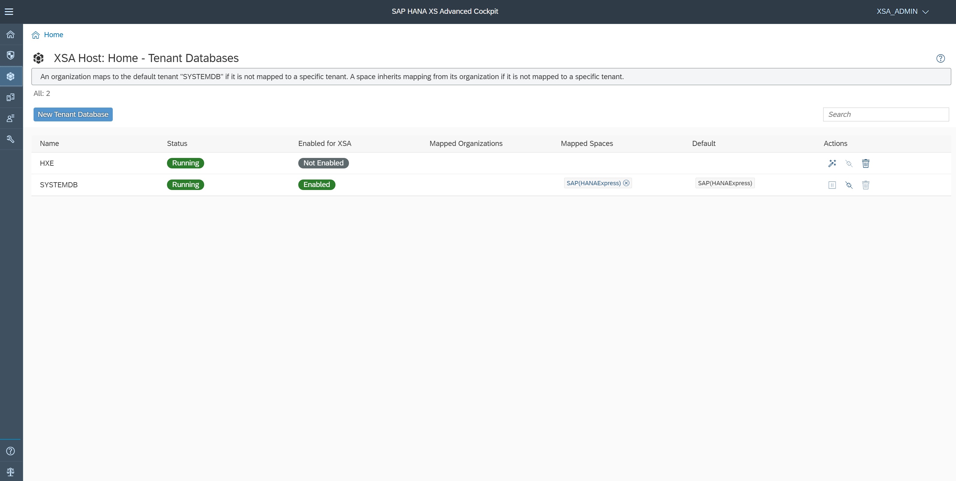 Next we look at the xsa-cockpit has information on the system, tenant databases, host and user management.