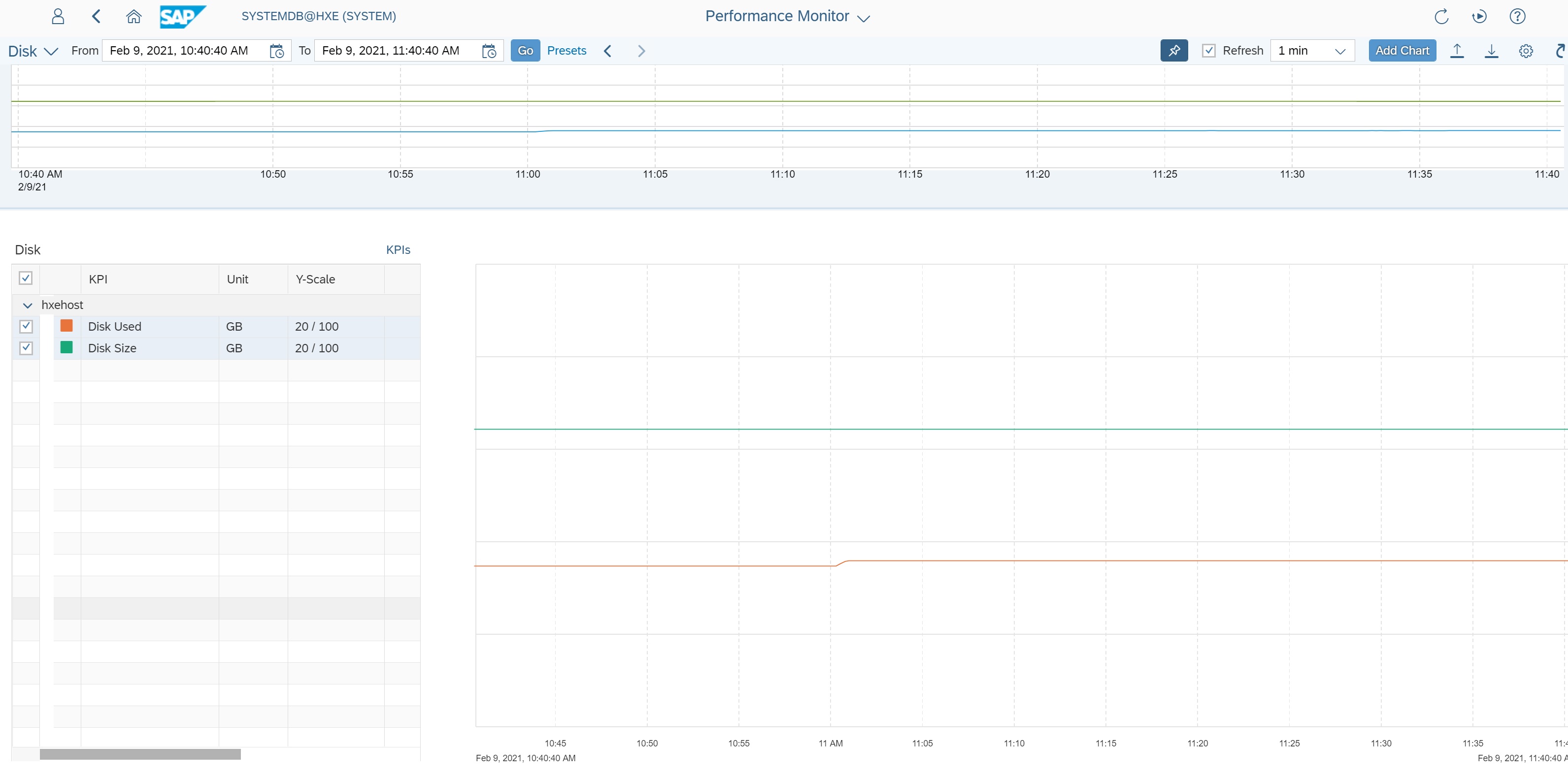 After a while the apps start to collect data and it appears on the database main screen, here disk usage, memory useage and CPU usage apps have appeared.