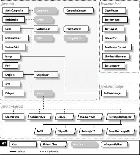 Below is a portion of the Java class hierarchy that includes several of the basic Graphic classes and Java2D API class.