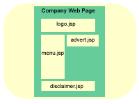 JSP are often used like templates where many JSP pages make up a web page - see below fig.