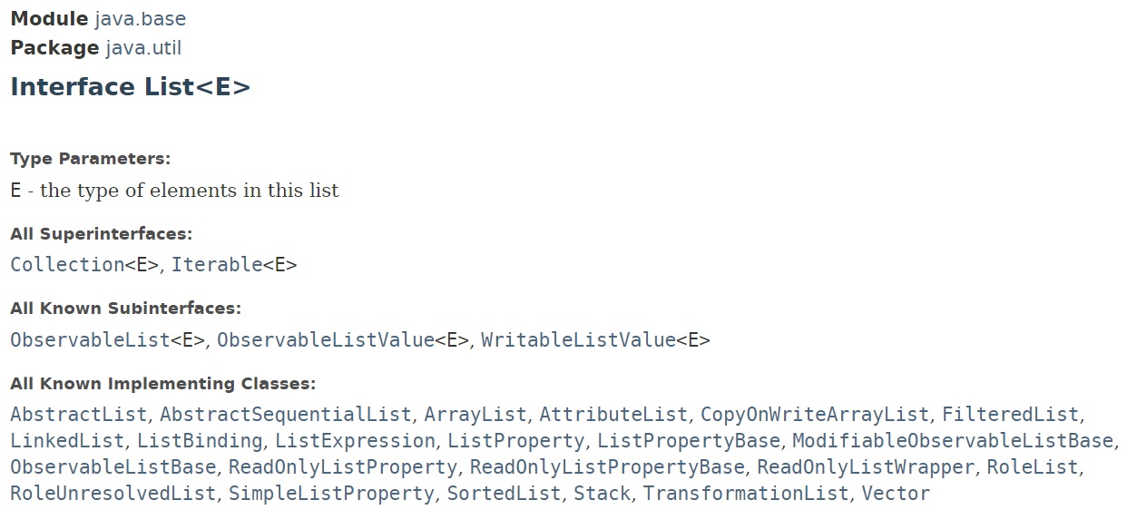Lists are a abstract data type, they are a ordered collection, there are many classes that implement the List interface as seen below.