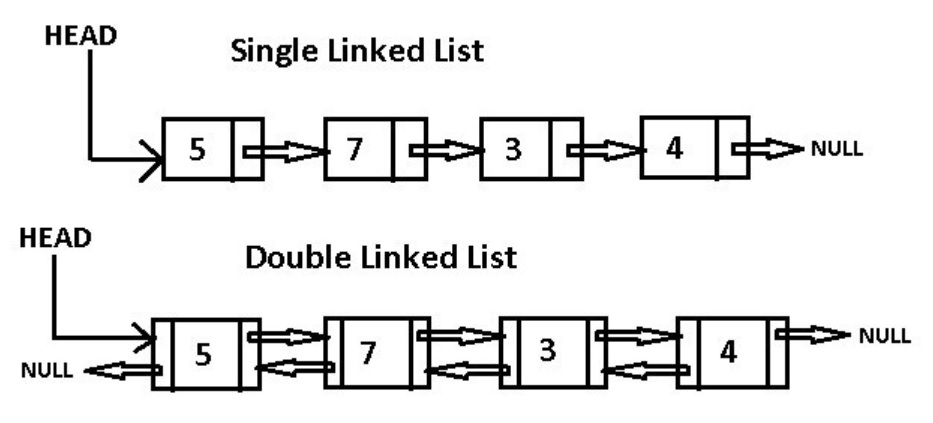You can have singly or double linked lists, each item in the list is called a node, the first item in the list is called the head node, the last item in the list will point to null.
