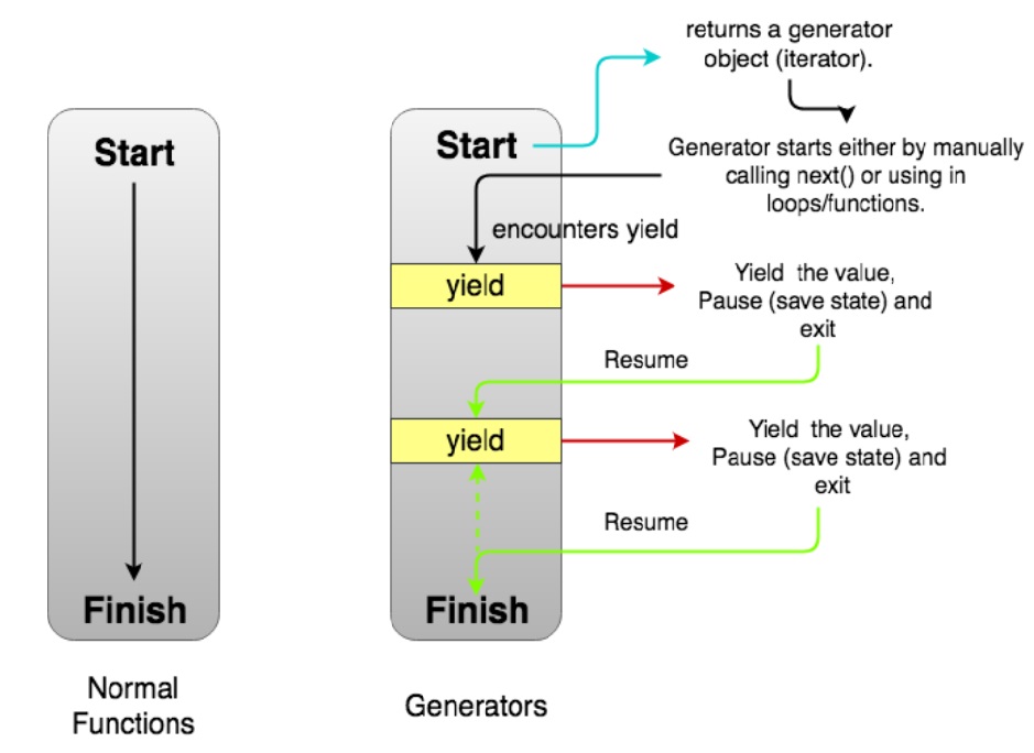 Generators allow you to pause and resume code execution inside a function block, below is a how they work