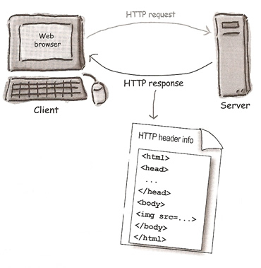 HTTP runs on top of TCP/IP, TCP is responsible for making sure that a file is sent from one computer to another and ends up as a complete file at the destination, even if the file is split up into chucks when it is sent. IP is the underlying protocol that moves/routes the chunks (called packets) from one computer to another. HTT is another protocol that has web-specific features but depends on TCP/IP to get the complete request and response from place to another. The structure of an HTTP conversation is a simple Request/Response sequence, a browser requests and a web server responds (see picture below).