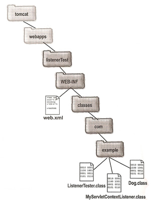 Compile the three classes and create the directory structure below and drop it into Tomcat, restart Tomcat and test http://localhost:8080/listenerTest/listenTest.do
