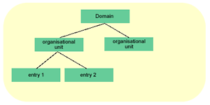 The data in an LDAP server is organised in a hierarchical/relational format. It is hierarchical becuase every entry in the server, apart from root is below another entry, it is relational because you can group entries together. The top level is called the domain and the branches are in the form of organisational units, normally departments in an company. These organisational units can then be sub-divided into sub-divisions. Each entry that is neither a domain or organisational unit is called a leaf.
