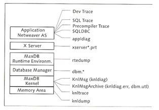 SAP and MaxDB can encounter many problems, knowing where to look can speed up a solution. There are a vast amount of diagnostic files within the SAP system, the diagram below show what files are available