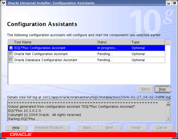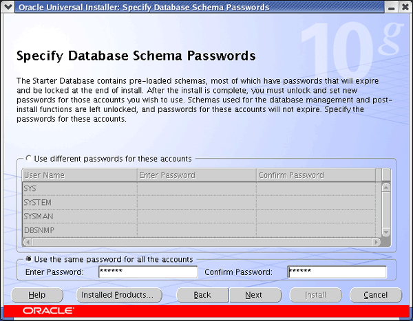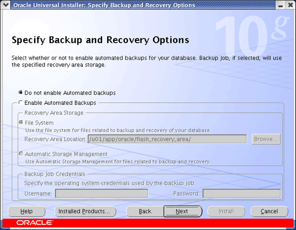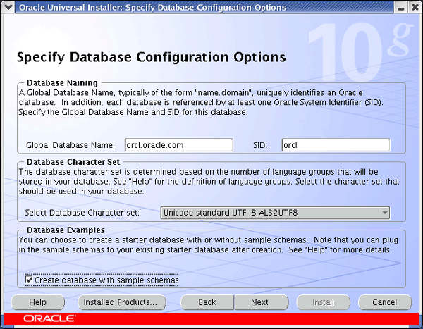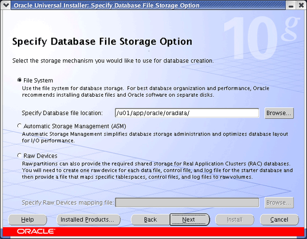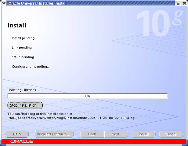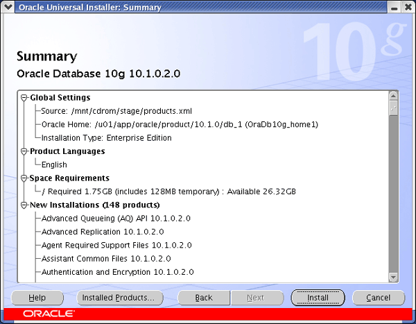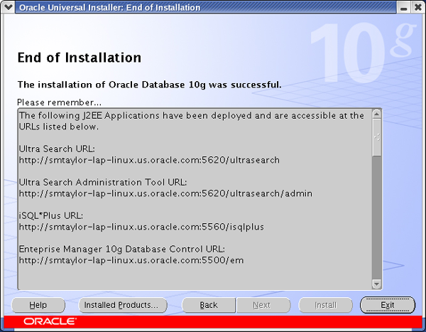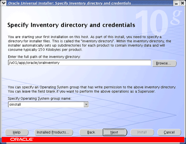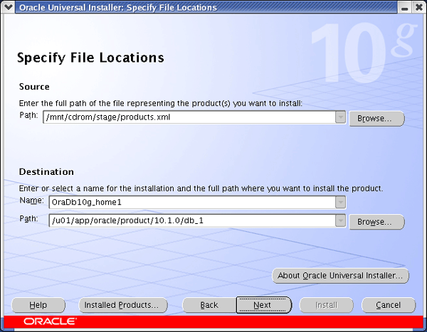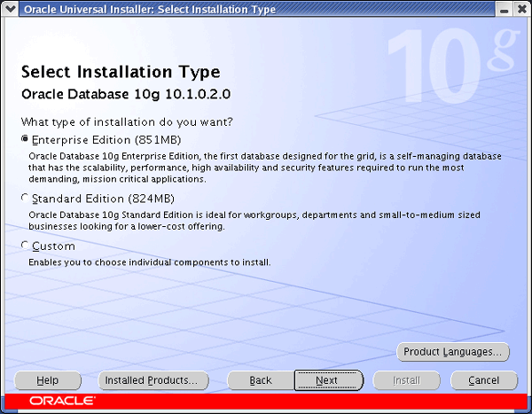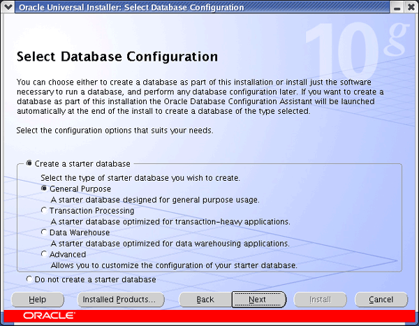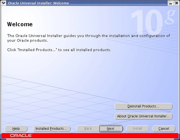Once you have the software installed you start the installation process by running the executable runInstaller, at this point a GUI interface (see below) should start.