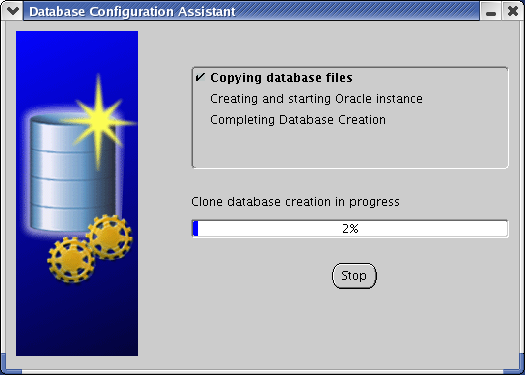 Now it begins the "create database" part and setups a example tablespace if you cose to do so
