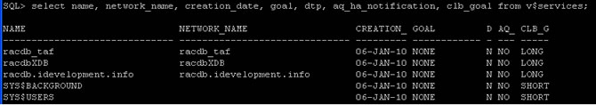 add | srvctl add service -d D01 -s BATCH_SERVICE -r node1,node2 -a node3 Note: the options are describe below -d - database -s - the service -r - the service will running on the these nodes -a - if nodes in the -r list are not running then run on this node |