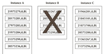 Instance B is removed from the cluster, only the resources from instance B are evenly remastered across the surviving nodes (no resources on instances A and C are affected), this reduces the amount of work the RAC has to perform, likewise when a instance joins a cluster only minimum amount of resources are remastered to the new instance.