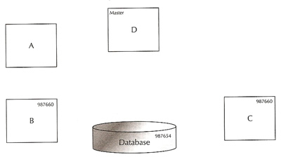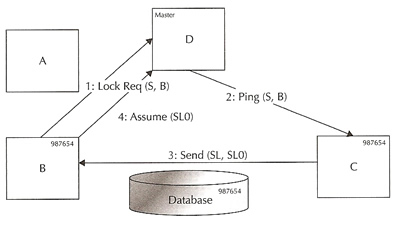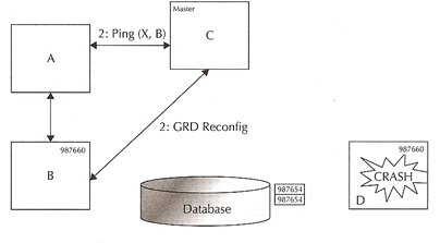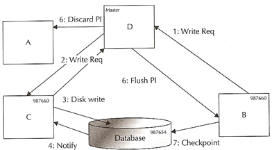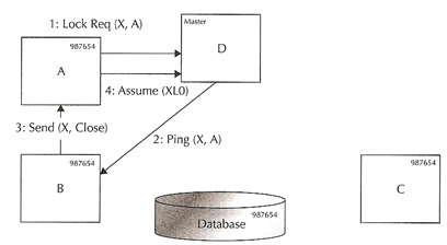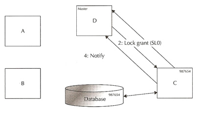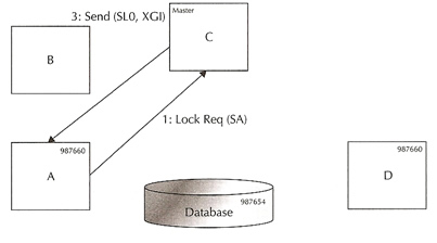 Carrying on from the above example, instance A wants to modify the same block that is already cached in instance B and C (block 987654)