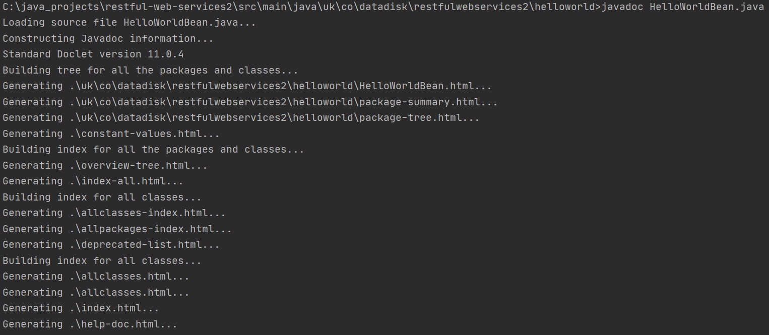 Once you have added the documentation, you use javadoc tool to create the HTML files, as per below, a number of HTML files are created