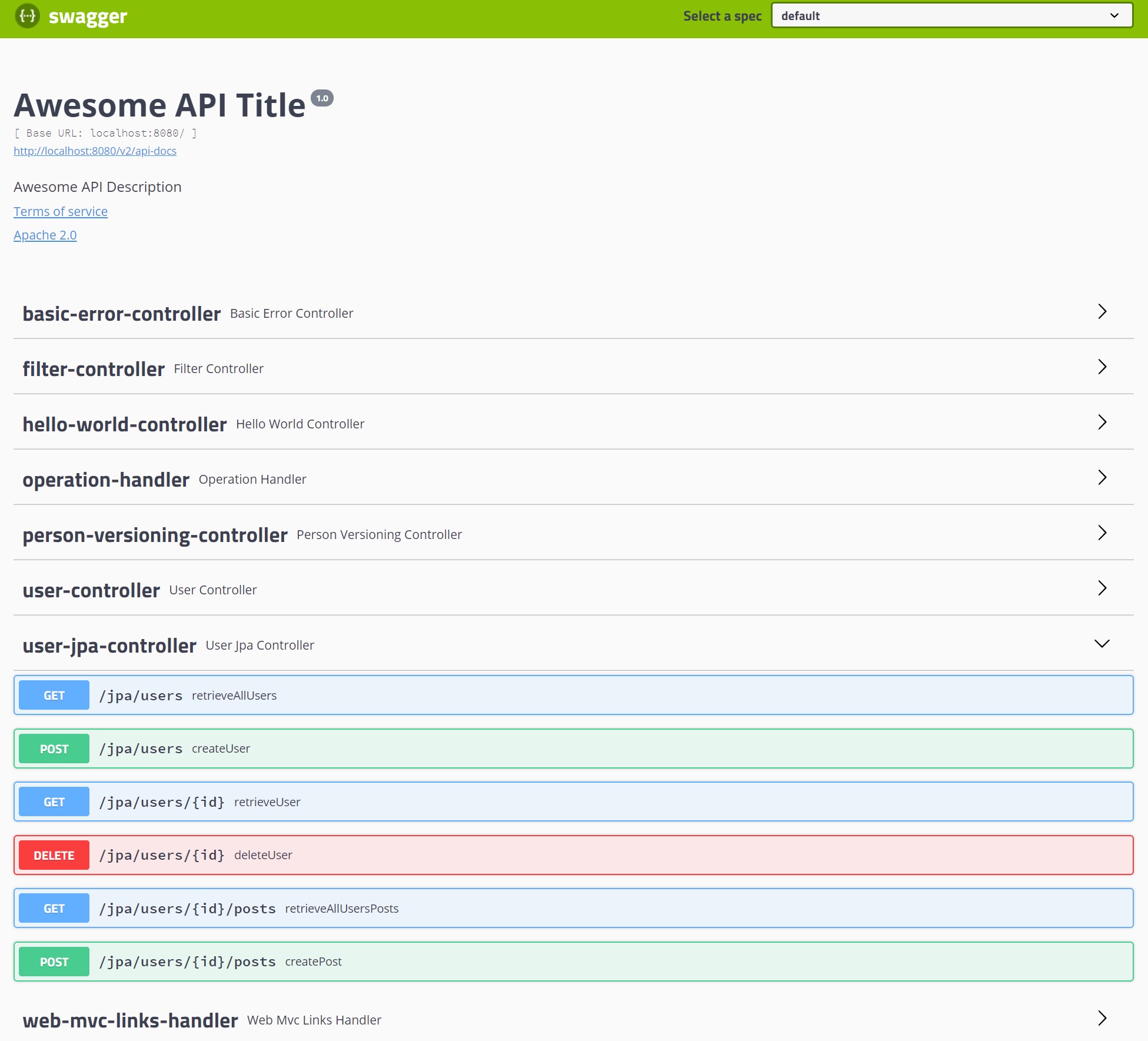 You can now also use the Swagger-UI by using the URL http://localhost:8080/swagger-ui.html as seen below.