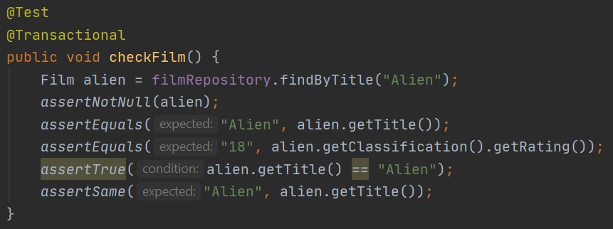 In this section I show a number of different examples of testing, first an example on using the @DataJpaTest annotation to test repositories, by adding the annotation the Spring Context will be able to any JPA related components, this means that the full Spring context is not started and means less resources and quicker tests.
