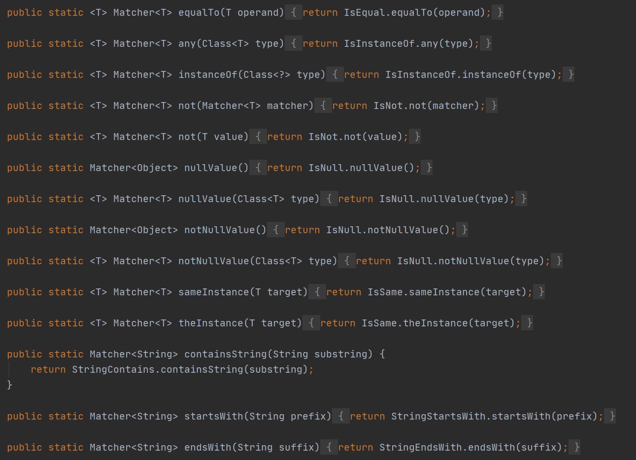 Hamcrest is a framework for writing matcher objects allowing ‘match’ rules, you can check if a string contains some text, or startwith or endwith some text, below is an example of a hamcrest matcher (left-hand screesnhot), there are many hamcrest matches (right-hand screenshot), also notice we use the assertThat method for matchers.