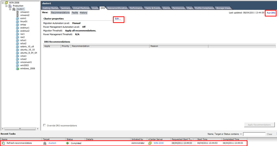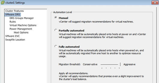 Firstly you must make sure vMotion has been setup and tested, you really should check every VM and make sure it has no problems migration to any ESXI server within the cluster. I will cover the manual mode only as partial and automatic are hybrid of the manual anyway, I will also use the aggressive mode so that we can at least see some action.
