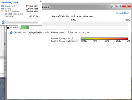 Each green box on the DRS resource distribution chart is a VM and it's size determines how much resources that it consumes, if you hoover over one of the green boxes (I have selected the largest green box), you get a more detailed looked on what resources the VM uses.