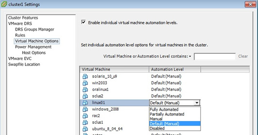 Custom automation levels | I did mention above that you can have individual settings for each VM, to change the automatic level of a VM just select the automatic level column and a drop down list will appear, then select one of the five options |