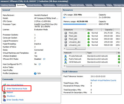 I just want to cover maintenance mode, you can select it on the summary page of a ESXi server, maintenance mode is an isolation state used whenever you need to carry out critical ESX server tasks such as upgrading firmware, ESXI servers, memory, CPU's or patching the server itself.
