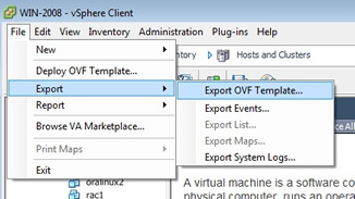 To export a VM into OVF, select the VM, then in the main vCenter window select file -> export -> "export to OVF template"