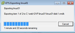 The comes a screen like below, fill in the details and select next The export will take place, it took about 5 mins for a standard 15GB linux VM Looking into the directory of the exported VM, you see then below |