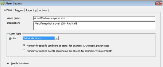 Fill in the alarm name and description with something meaningful, make sure the alarm is enabled at the bottom In the triggers tab, select add, then the line has drop down lists that you can choose what options you want, I am setting up an alarm to email me when a snapshot file is greater than 1GB I then select the action tab so that the alarm will email me, again it is the same as above, the line has drop down lists that you can change Finally the alarm is created and ready to go To remove it, just right-click and select "remove". If you have not already configured mail within vCenter, then follow the steps below, first open the "vCenter server settings" from the home page Then select the mail option and fill in the SMTP server details and sender account details, then you can test the alert above by increase a snapshot to over 1GB