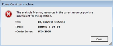 VMware also uses reservations, you could even regard them as a way of meeting service level agreements (SLAs), for an example if the memory reservation on a VM is 1GB of RAM and that amount of physical RAM is not available you will be unable to power on this VM, this is know as admission control, basically if you exceed physical limits of the ESXi server you will not be able to power on the VM.