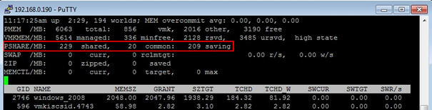 You can also use the esxtop command to see what you are sharing, when you first start esxtop it will display CPU usage, type m to display memory usage.