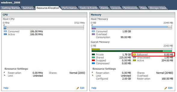 When you install VMware Tools into a VM, a memory driver is also installed, its file name is vmmemctl, but is it also known as the balloon driver, because it uses the analogy of a balloon to explain how this driver works. This driver is only engaged when memory is scarce (when contention is occurring), it inflates by demanding pages of memory from other VM's (these may have low priority). The guest OS obeys its internal memory management techniques, freeing up RAM by flushing old data to its virtual memory (paging file or swap partition) to give the vmmemctl driver ranges of memory, rather than hanging on to this newly allocated memory, the vmmemctl driver hands it over to the VMKernel, which itself hands it over to the VM's that require it. When the demand has returned to normal the balloon driver deflates and gracefully hands back the memory it claimed to the guest OS.