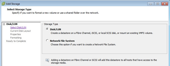 In this section I will be covering different types of storage (see below), I will also be discussing the Virtual Machine Filesystem System (VMFS) and how to manage it.