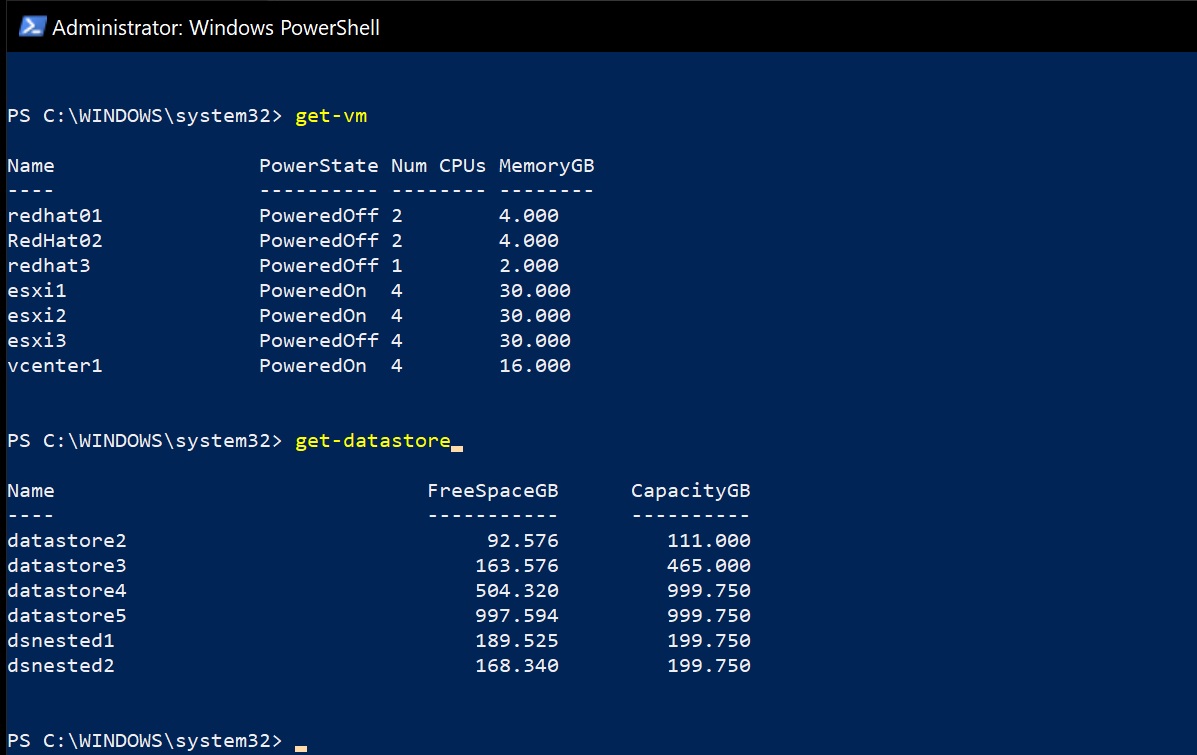 You can also feed one command into another with the use of Pipes (|), if you know the Unix world then this will be familiar, I have listed some common commands below to get you started and to see what tasks you can perform using PowerCLI.