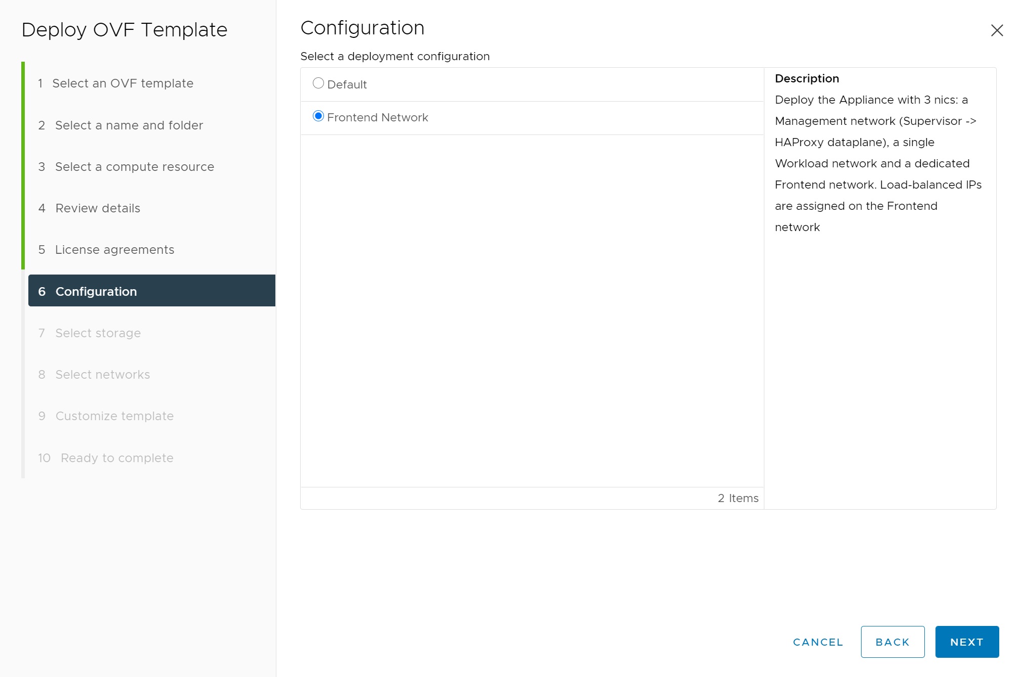We select the frontend network option, this will create a default setup of three networks which it will ask for in a moment