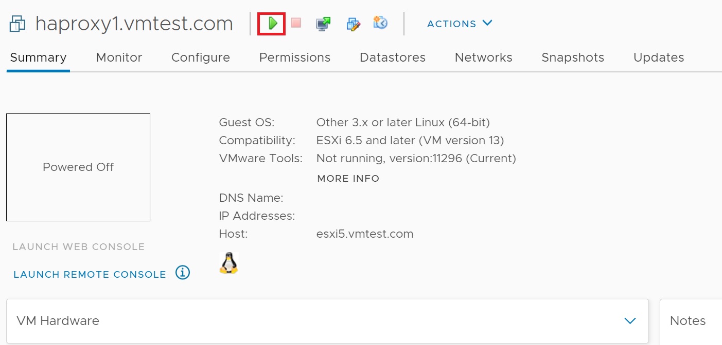 The HAProxy VM is then create, we then power it on and that's it the HAProxy is ready.