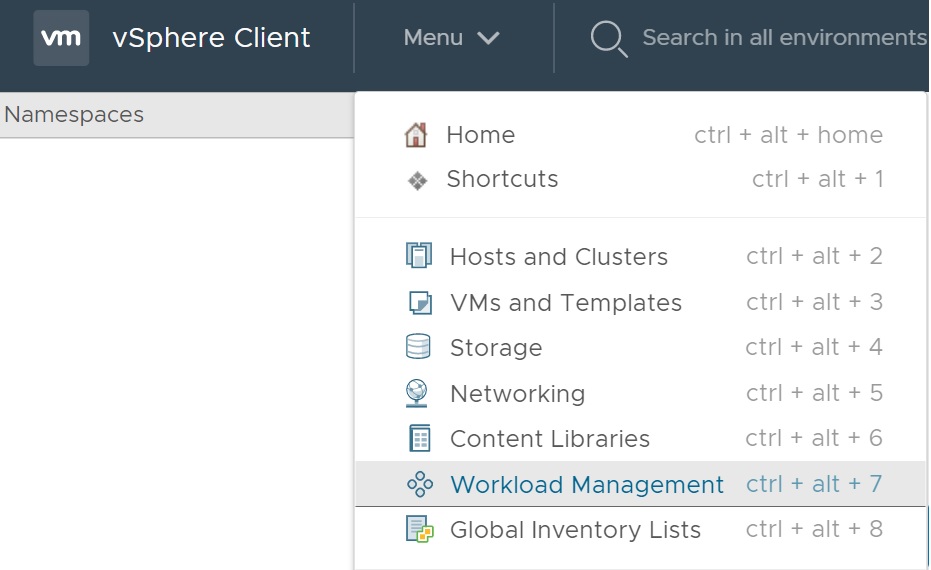 Now we are ready to setup the kubernetes cluster, select Menu -> WorkLoad Management