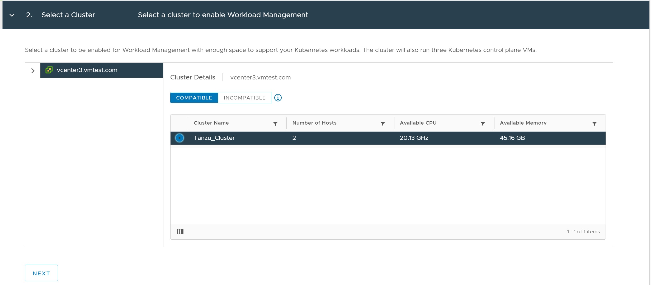 Next we select the cluster (compute resource) that we want the kuberneters cluster to be created in