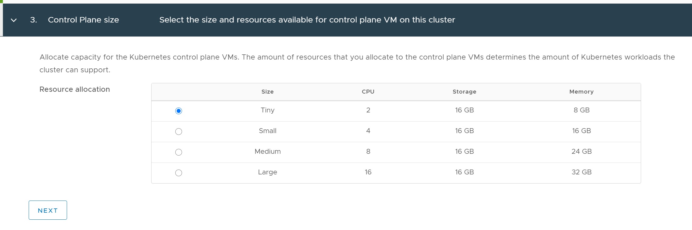 You can select the control plane size depending on your needs, here I have selected the minimum