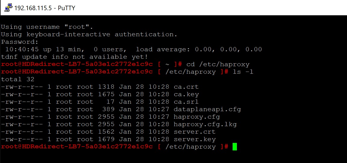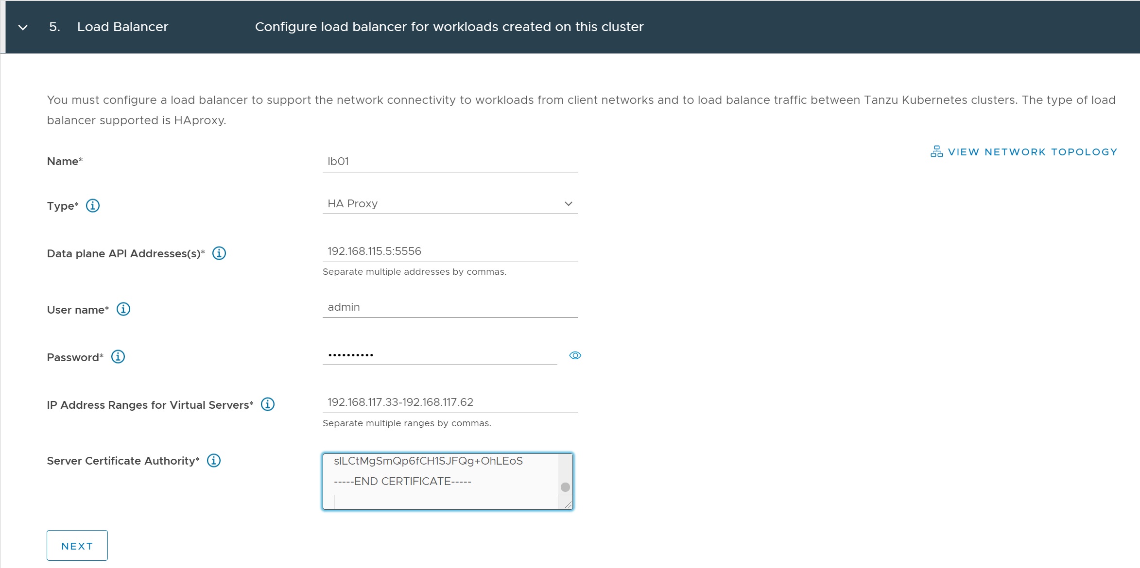 The next setup screen we configure the load balancer, we need the haproxy certificate which you can find in the below directory on the haproxy server, cat the ca.crt file